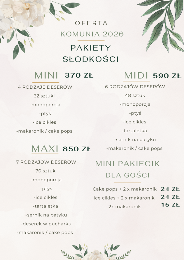 Mamy dla Was komunijną ofertę 2026, w której znajdziecie wszystko, co potrzebne, by stworzyć zachwycający słodki stół w domowym klimacie.