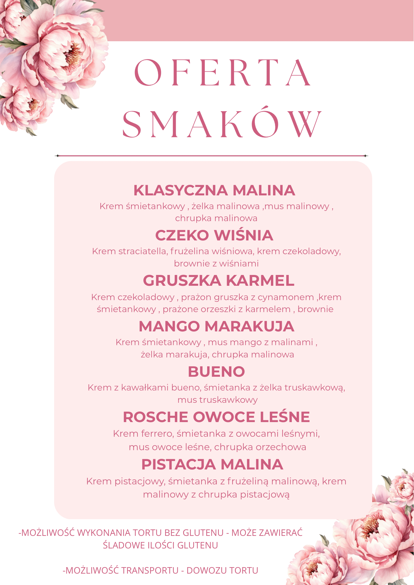 Poniżej Propozycja Kompozycji Smakowych – na życzenie możliwa modyfikacja